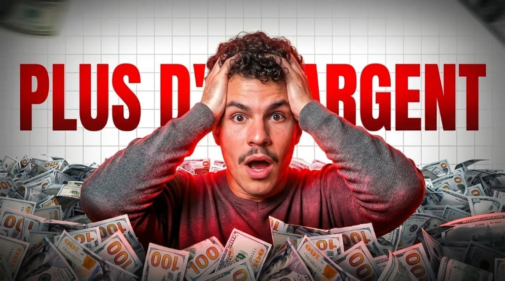 "Pluie de billets style MrBeast, expression choquée..."